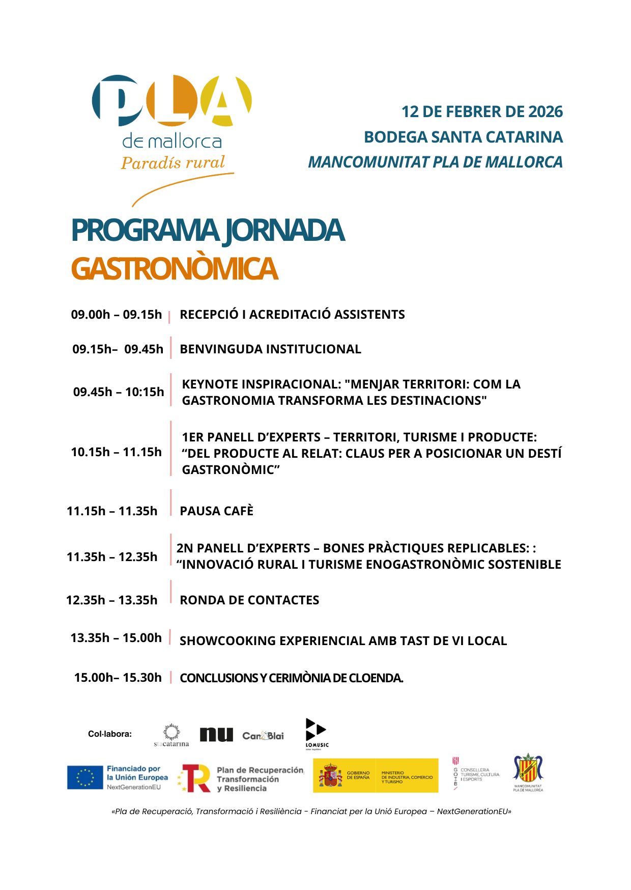 La jornada va tenir lloc el passat 12 de febrer de 2026 a la Bodega Santa Catarina (Sencelles), reunint representants institucionals, productors agroalimentaris, restauradors, empreses del sector turístic i entitats col·laboradores del territori.