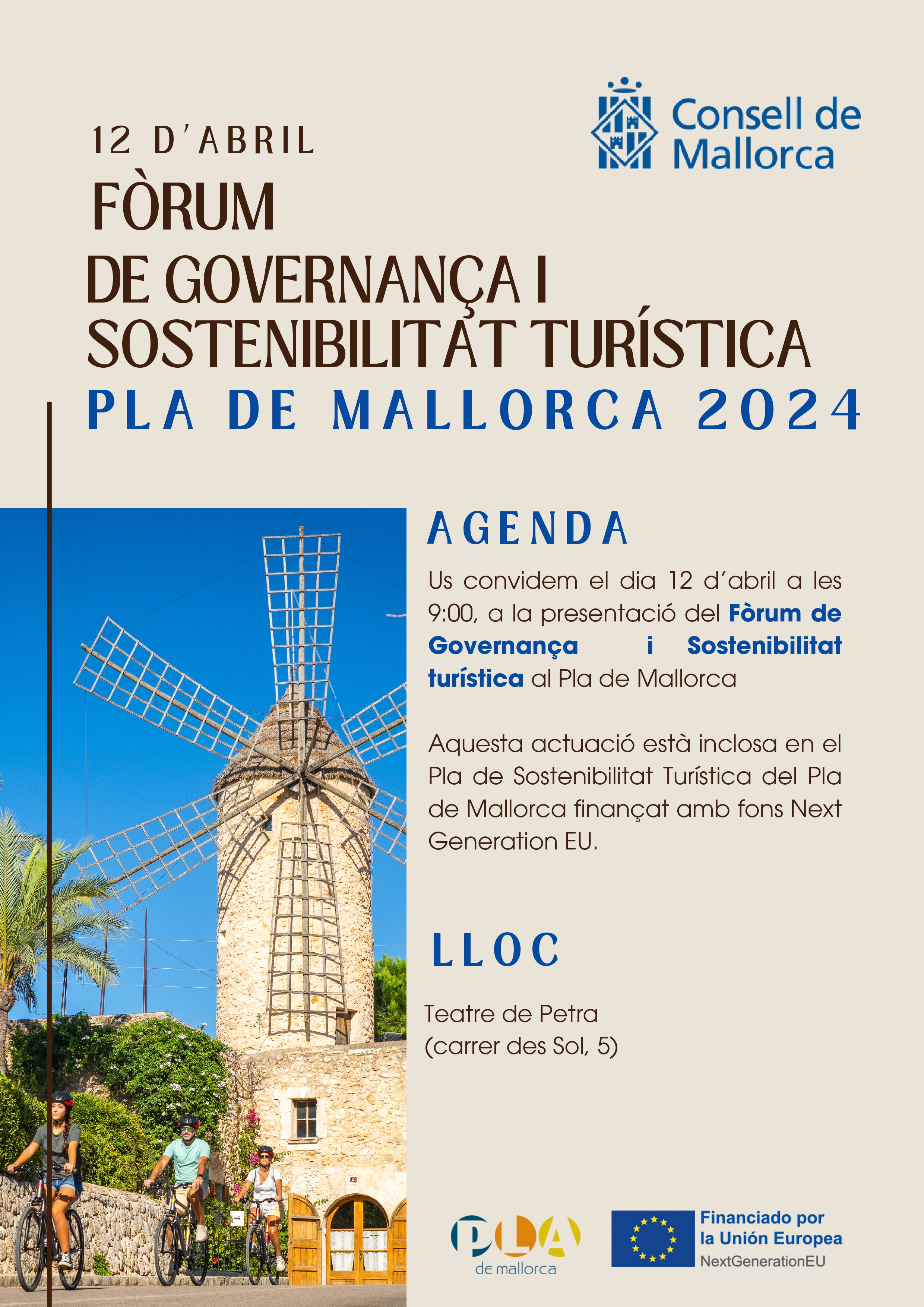 El divendres 12 d’abril, tindrà lloc el Fòrum de Governança i Sostenibilitat turística del Pla de Mallorca organitzat conjuntament pel Consell de Mallorca i la Mancomunitat Pla de Mallorca.