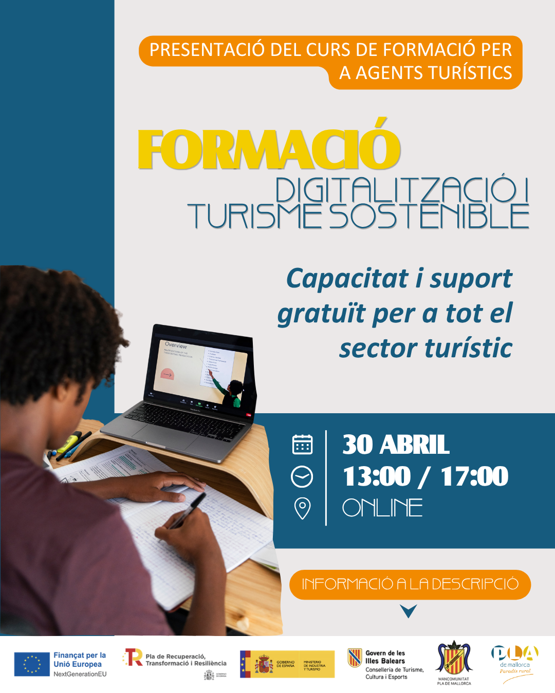 La Mancomunitat del Pla de Mallorca inicia el Pla de Formació en Tecnologies de la Informació i la Comunicació (TIC) i turisme sostenible, una actuació inclosa dins el Pla de Sostenibilitat Turística en Destí (PSTD) del Pla de Mallorca i finançada pel Pla de Recuperació, Transformació i Resiliència (PRTR) amb fons Next Generation EU.