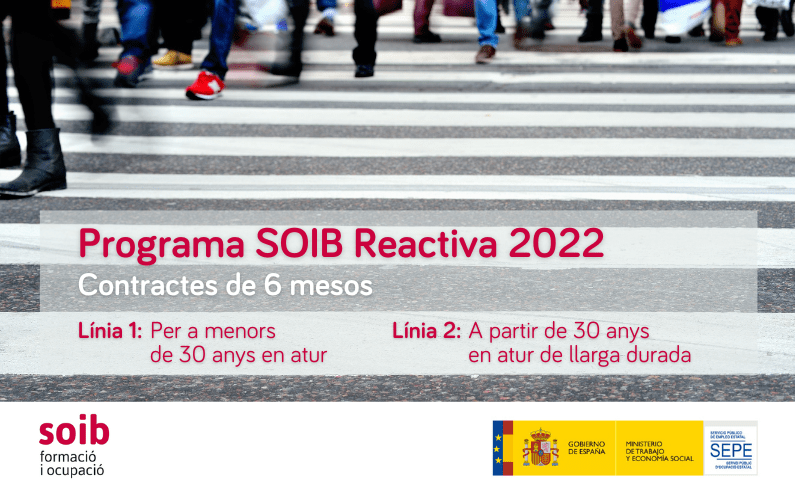 Aquest projecte realitzat al marc del programa SOIB Reactiva 2022 ha estat promogut pel SOIB i l'ha finançat la Conferència Sectorial d'Ocupació i Assumptes Laborals.