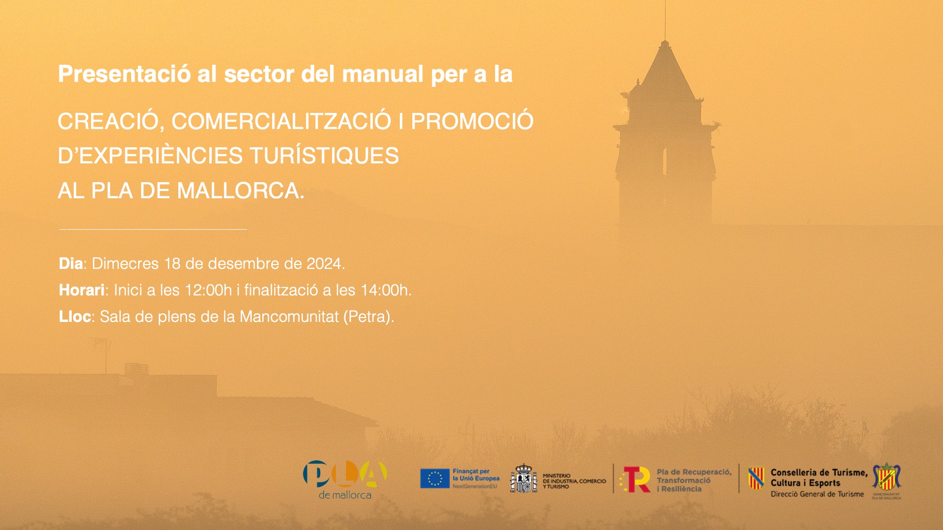 Aquesta actuació s’emmarca dins el Pla de Sostenibilitat Turística de Destí (PSTD), finançat per la Convocatòria Extraordinària 2021 dels fons NextGenerationEU de la Unió Europea, i està adreçada al sector turístic del Pla de Mallorca, productors, allotjaments i empreses d'experiències.