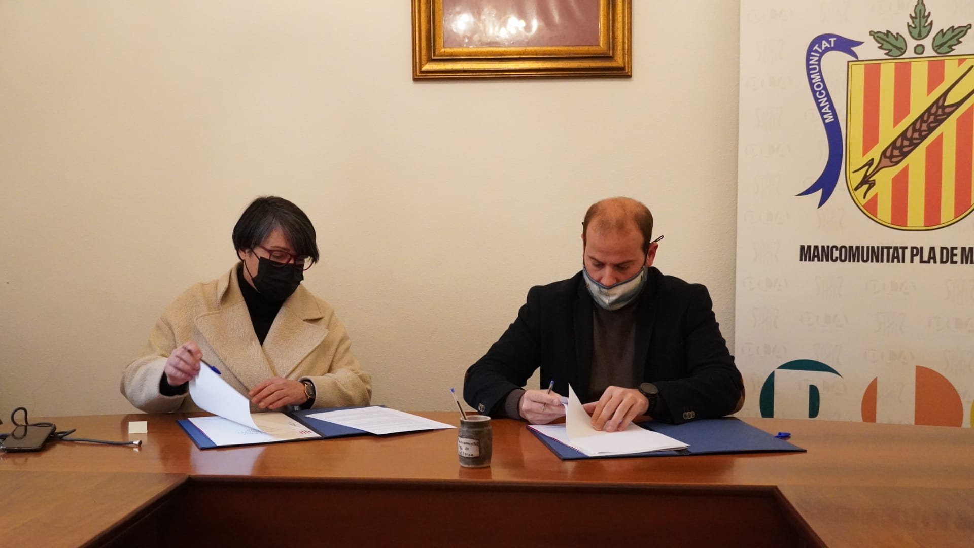 El conseller de Medi Ambient i Territori, Miquel Mir, i la presidenta de la Mancomunitat del Pla de Mallorca, Joana Maria Pascual, han signat, aquest divendres, el Protocol general d’actuació entre l’Agència Balear de l’Aigua i la Mancomunitat en matèria de subministrament d’aigua potable.